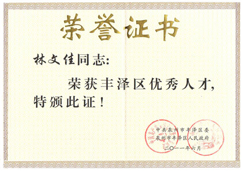 近日,為進(jìn)一步營造“尊重勞動(dòng)、尊重知識(shí)、尊重人才、尊重創(chuàng)造”的良好氛圍,推進(jìn)“人才強(qiáng)區(qū)”的戰(zhàn)略,豐澤區(qū)委、區(qū)政府舉辦“關(guān)于評選表彰2011年豐澤區(qū)優(yōu)秀人才”的活動(dòng),向外公布表彰35位業(yè)務(wù)精湛、貢獻(xiàn)突出的優(yōu)秀人才,福建省訊網(wǎng)網(wǎng)絡(luò)科技有限公司總經(jīng)理林文佳先生榜上有名,被授予專業(yè)技術(shù)類優(yōu)秀人才榮譽(yù)稱號(hào)。