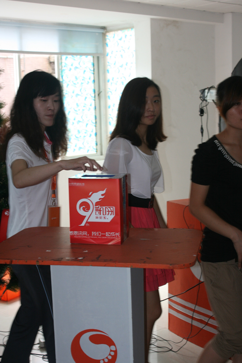 據(jù)悉,2011年是福建訊網(wǎng)網(wǎng)絡(luò)科技有限公司成立的第九個(gè)年頭,九年歷程,全體訊網(wǎng)人以“感恩之心”攜手同行,并立誓以實(shí)際行動(dòng)積極回報(bào)社會(huì)。在今天“愛(ài)心伴我行”的活動(dòng)現(xiàn)場(chǎng),大家踴躍募捐,以自己的綿薄之力踐行著作為訊網(wǎng)一份子的承諾,并于活動(dòng)現(xiàn)場(chǎng)寫(xiě)下了自己對(duì)于訊網(wǎng)即將到來(lái)的九周年生日的祝福。“通過(guò)募捐箱的款項(xiàng)統(tǒng)計(jì),此次募捐共籌集一千元整,我們將充分利用這些承載著訊網(wǎng)人愛(ài)心的基金,為孤兒院的孩子們‘雪中送炭’,為訊網(wǎng)九周年生日獻(xiàn)上一份大禮”,環(huán)球鞋網(wǎng)人資部負(fù)責(zé)人在采訪(fǎng)中說(shuō)到。