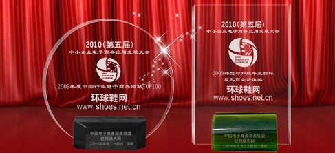 4月24日,中小企業(yè)電子商務(wù)應(yīng)用發(fā)展大會(huì)暨2009年度中國行業(yè)電子商務(wù)網(wǎng)站TOP100頒獎(jiǎng)盛典在深圳召開。本次會(huì)議以轉(zhuǎn)型與升級為主題,會(huì)議邀請了深圳市相關(guān)政府領(lǐng)導(dǎo)、全國各優(yōu)秀電子商務(wù)企業(yè)代表、專家學(xué)者及眾多優(yōu)秀中小企業(yè)高管上千人,共同分析和探討中國中小企業(yè)電子商務(wù)應(yīng)用新發(fā)展趨勢。環(huán)球鞋網(wǎng)總經(jīng)理林文佳先生應(yīng)邀出席本次行業(yè)盛會(huì),并在會(huì)上獲得2009年度中國行業(yè)電子商務(wù)網(wǎng)站TOP100及2009轉(zhuǎn)型與升級年度榜樣•最具商業(yè)價(jià)值獎(jiǎng)兩項(xiàng)年度大獎(jiǎng),成為本次會(huì)議上最閃亮的明星企業(yè)之一。