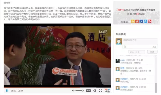 而在今年的418晉江鞋博會上,環(huán)球鞋網(wǎng)也通過“參與式”的直播,將鞋博會成果、亮點、新產(chǎn)品等向全球幾十萬訪客直播,用戶除了可以通過電腦手機來瀏覽,還可以進行互動交流