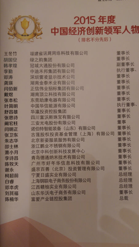 近日,由中國發(fā)展網(wǎng)主辦的首屆中國新常態(tài)經(jīng)濟發(fā)展高層論壇暨2015“發(fā)展中國年度人物”盛典(以下簡稱“論壇”)在北京舉行。訊網(wǎng)科技董事長王冬竹,榮獲“2015年度中國經(jīng)濟創(chuàng)新領軍人物”。