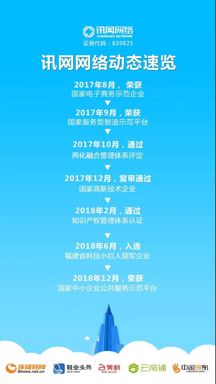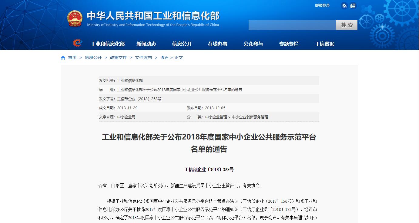 經(jīng)工信部評審及公示后,12月5日,工信部正式公布了“2018年度國家中小企業(yè)公共服務示范平臺”名單,福建訊網(wǎng)網(wǎng)絡科技股份有限公司(以下簡稱“訊網(wǎng)網(wǎng)絡”)成功入選。