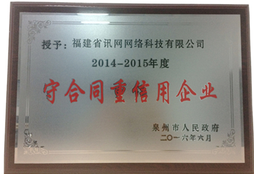 近日,泉州市人民政府公布2014-2015年度 “守合同重信用企業(yè)”(以下簡稱“守重企業(yè)”)名單,福建訊網(wǎng)網(wǎng)絡(luò)科技股份有限公司位列其中,這是對訊網(wǎng)網(wǎng)絡(luò)誠信經(jīng)營行為的肯定。